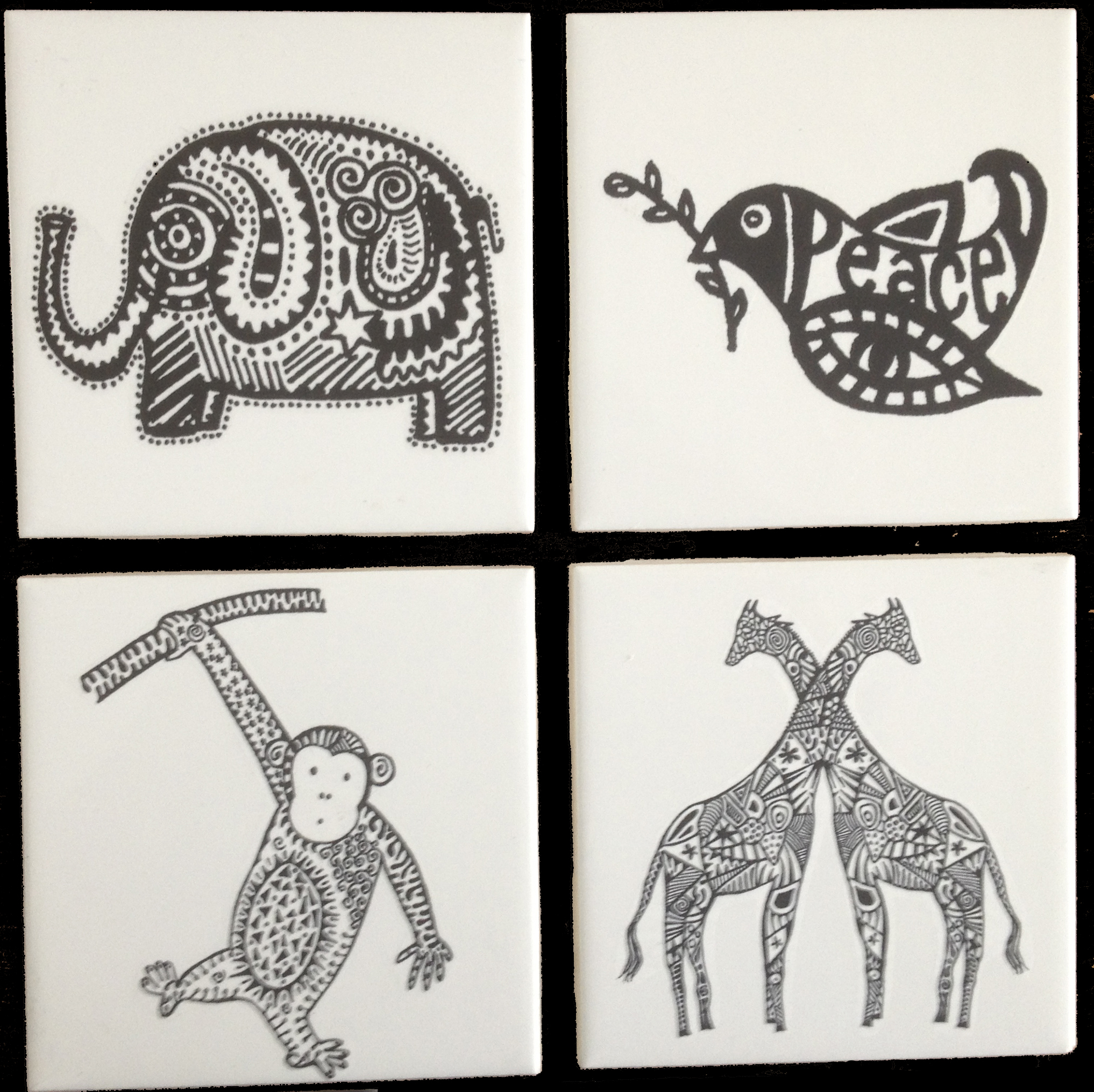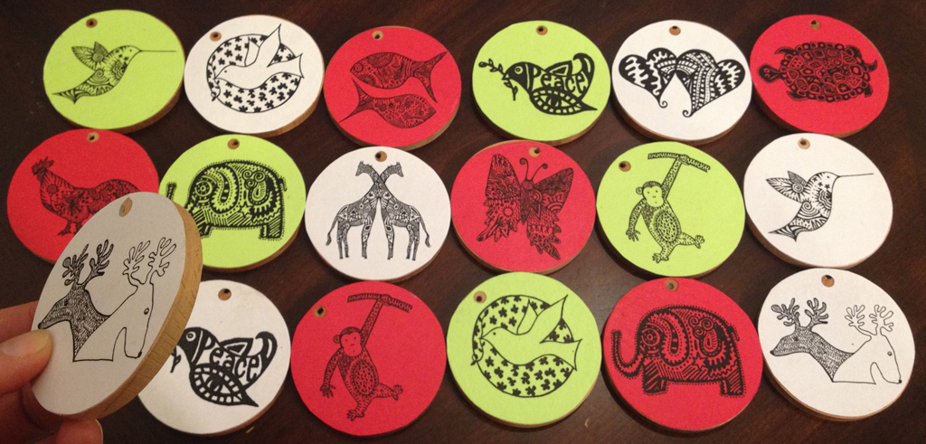 In addition to notecards and baby clothes, Karmabee’s black & white designs are printed on various fun items for you and your home. These include temporary tattoos, wine corks, tote bags, coasters, phone cases, ornaments, wrapping paper, buttons, silver pendants, colorful plastic pendants & custom designs and projects, including wedding invitations & favors.