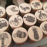 In addition to notecards and baby clothes, Karmabee’s black & white designs are printed on various items for you and your home. These include washi tape, tote bags, cork coasters, craft stamps, silver pendants and buttons. We also offer custom designs and projects, including wedding invitations & favors.